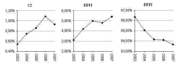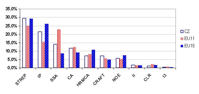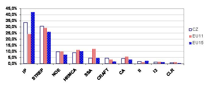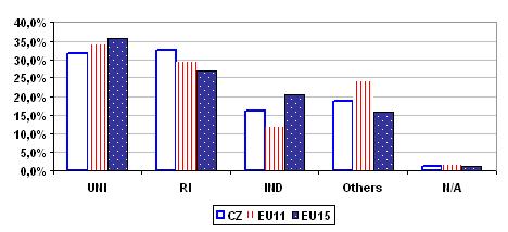 We can conclude that the Czech industry participation is evidently closer to the structure of EU-15 participants.