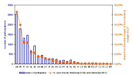 Since the EC funding does not correspond with the total budget of the industrial participant very clearly (EC contributes to the research activities up to 50 localhost, demonstration activities up to 35 localhost, other activities can be supported up to 100 localhost),it is better to characterize each state’s industry participation by the total participants budget (than the EC funding).